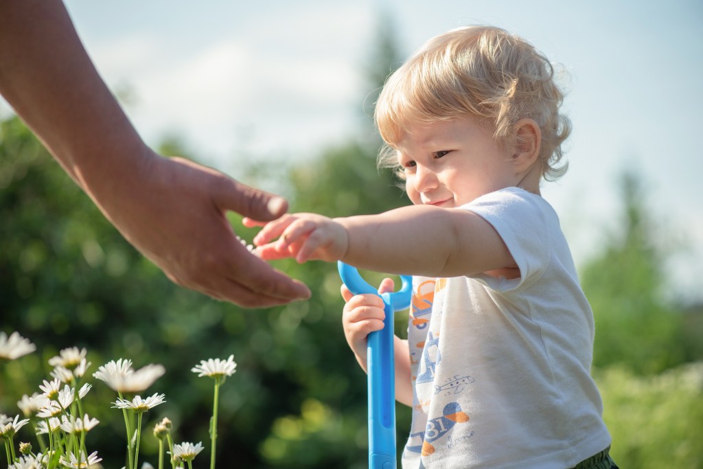 Child reaching for father’s hand